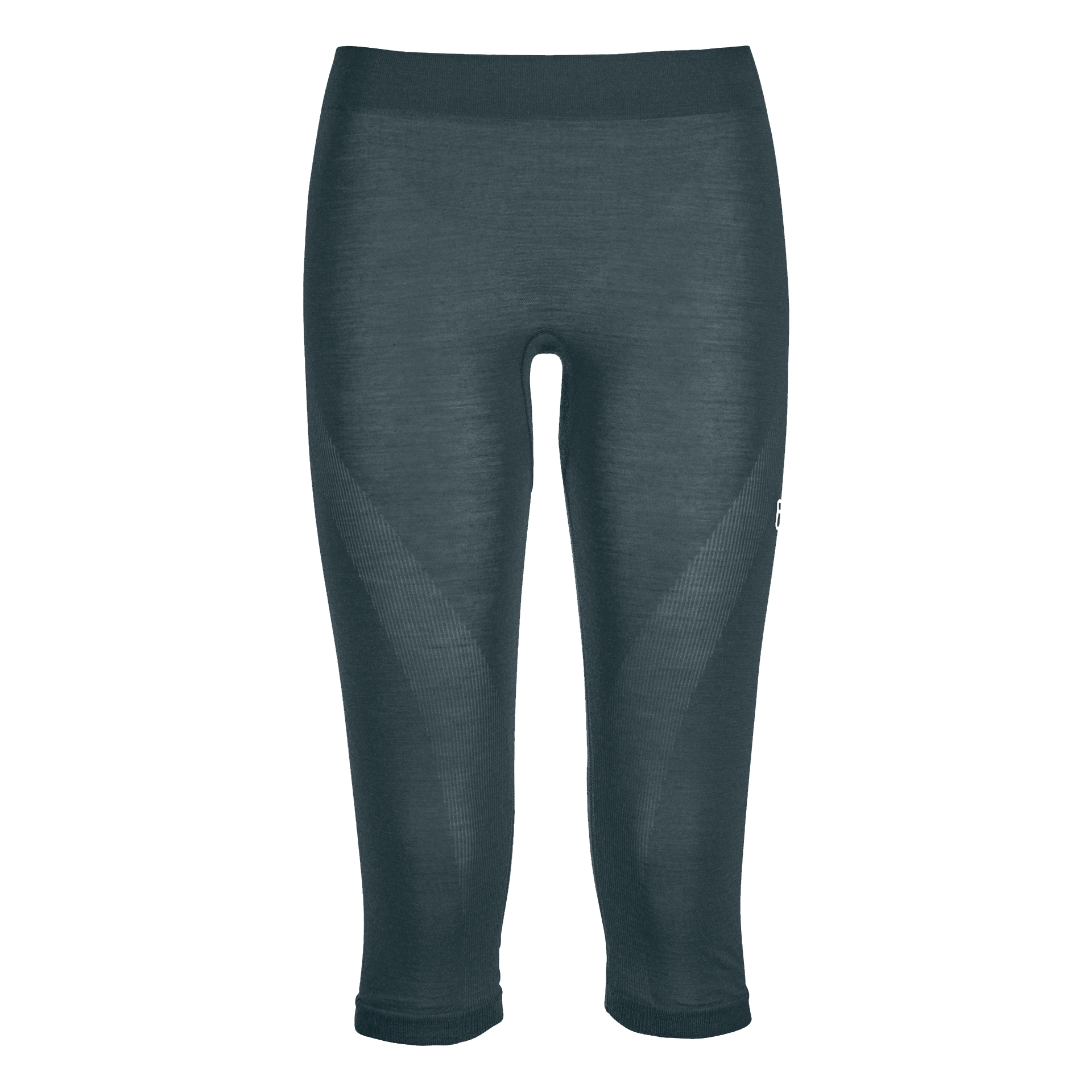 Consisting of a high proportion of merino wool, this line is now even lighter! What makes our 120 COMP LIGHT SHORT PANTS for women so special is that they are produced using an almost entirely seamless circular knitting technique, so that different material strengths can be used in different areas. A fine ribbed structure made from 120 g/mti² MERINO gives our three-quarter, functional long johns elasticity for maximum freedom of movement, while a particularly breathable mesh structure ensures opmum air circulation in the areas of the body that generate the most heat.