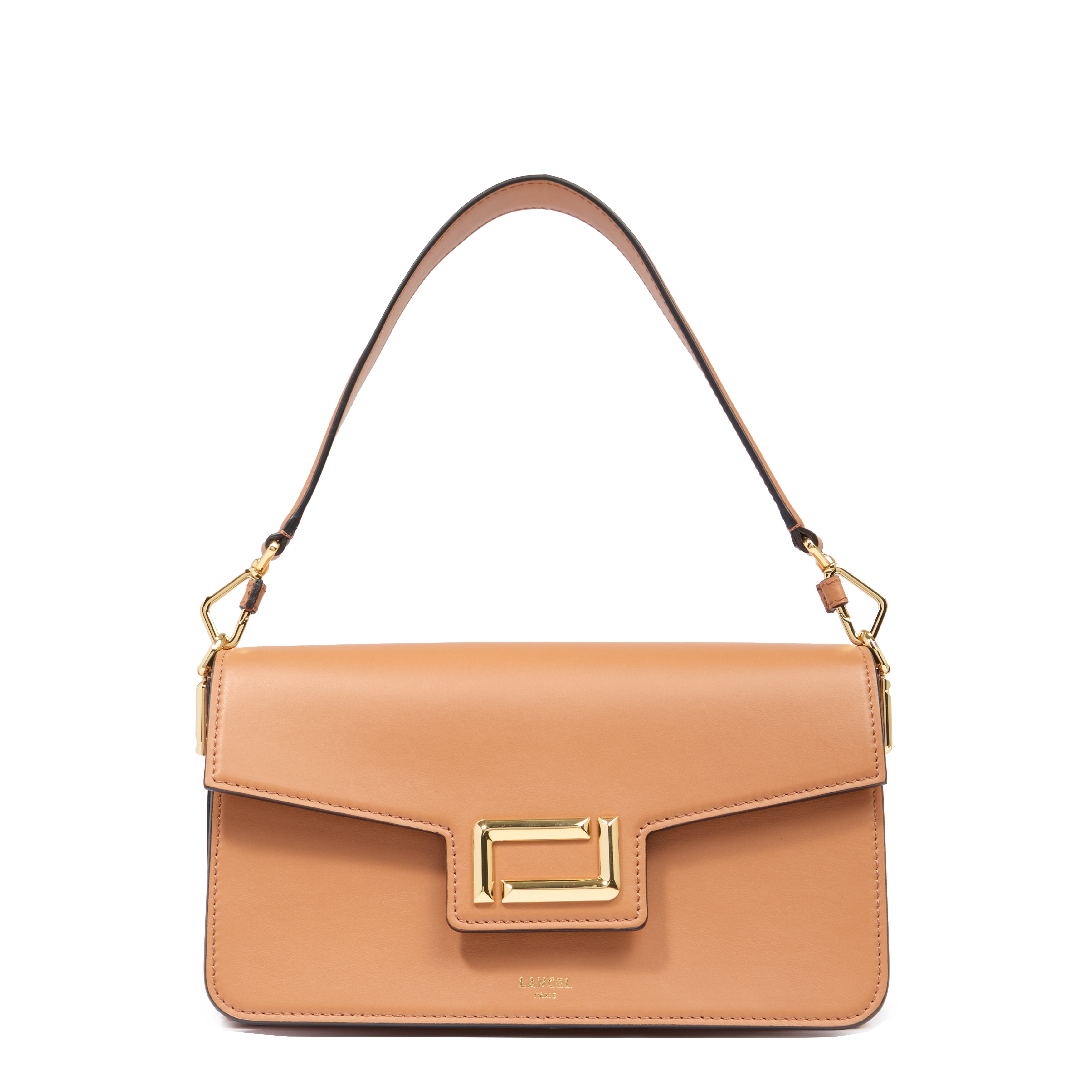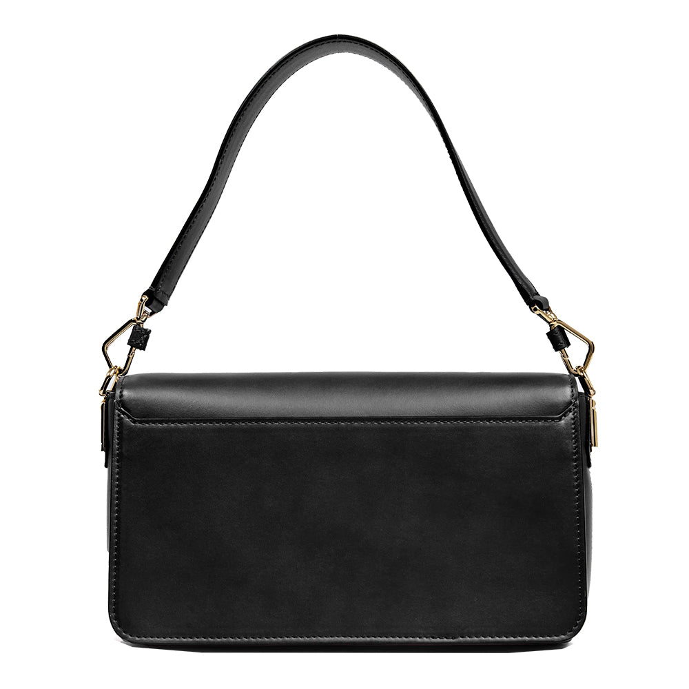 - Removable and adjustable leather shoulder strap for crossbody wear
