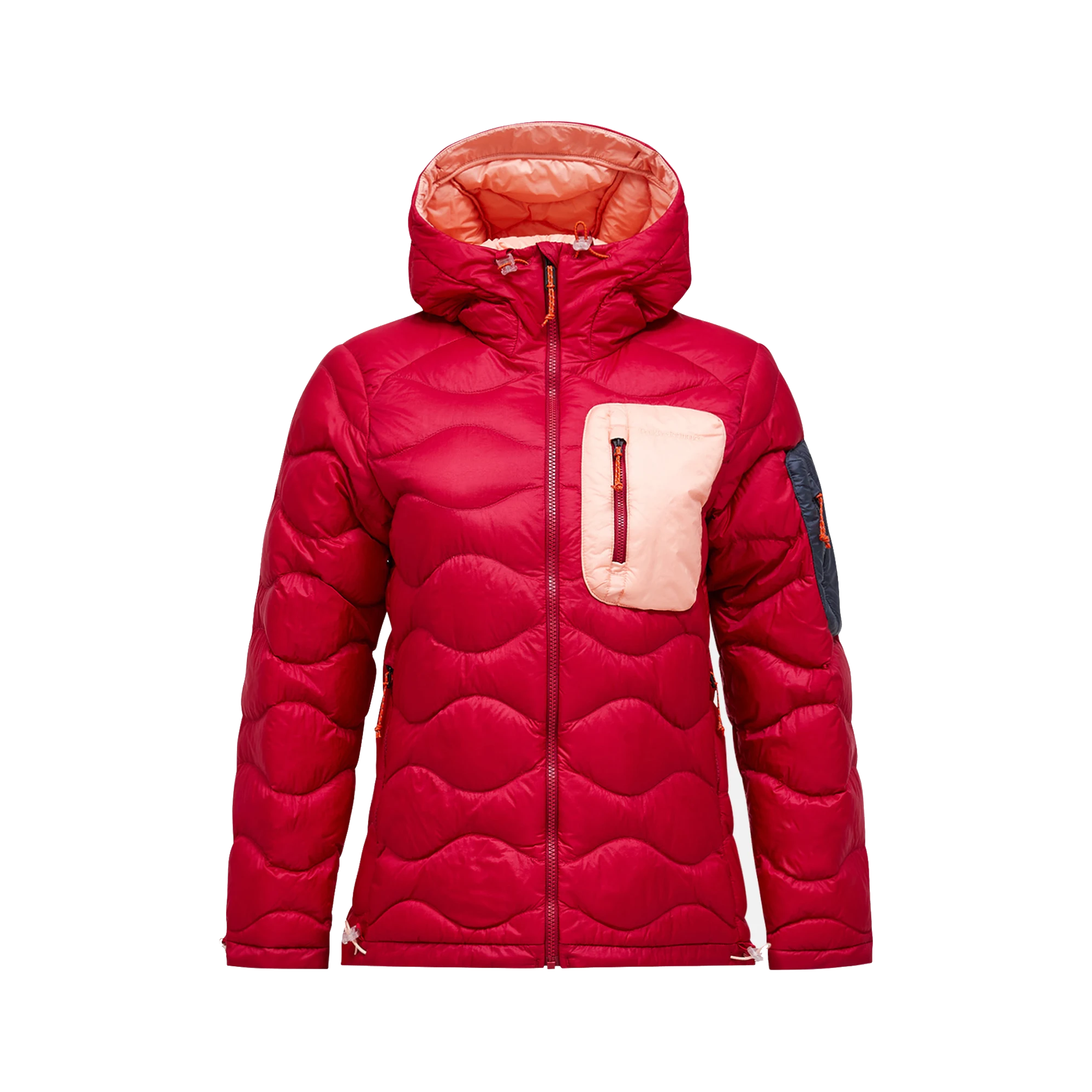 Adjustable drawcord at bottom hem, Adjustable sleeve hem with cord stopper, Chinguard, Duck down, 700 fill power, 90/10 down/feather, Fixed Hood, Full front with YKK Vislon® zipper, Hanger loop inside neck, Made without intentionally added PFAS, P-logo embroidery at sleeve, Packable into the left hand pocket, Peak Performance embroidery at chest, Quilted in our iconic Helium pattern, Responsible down standard, Sterilization Permit no. PA 9900(CN), Two-way (height and width) adjustable hood, Zippered chest pocket, Zippered hand pockets, Zippered sleeve pocket