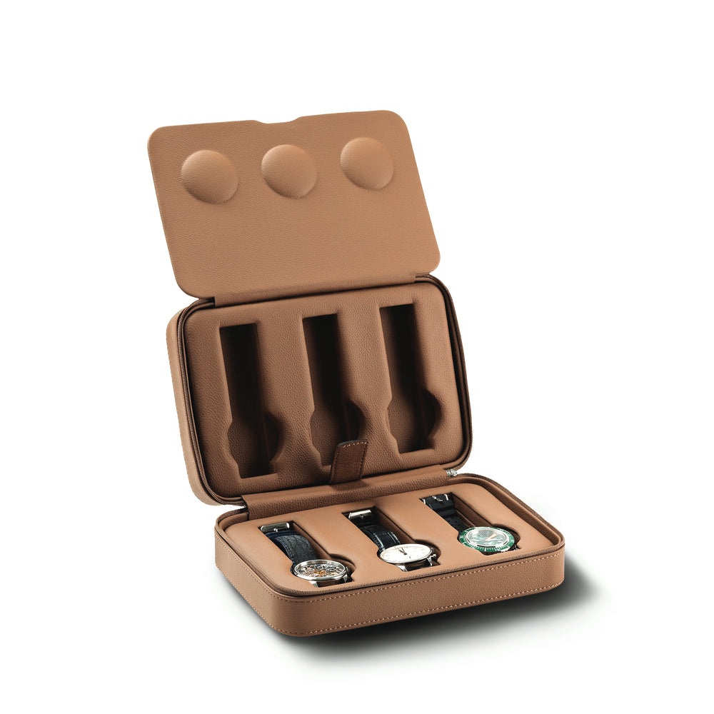 The Viaggio 6 watch case embodies the pinnacle of Italian craftsmanship. With a refined aesthetic, this travel case is clad in natural leather: a finish that is both durable and pleasant to the touch. A perfect union of functionality and style, this watch case offers a refined sanctuary for your timepieces, ensuring optimal protection against shocks wherever you go.