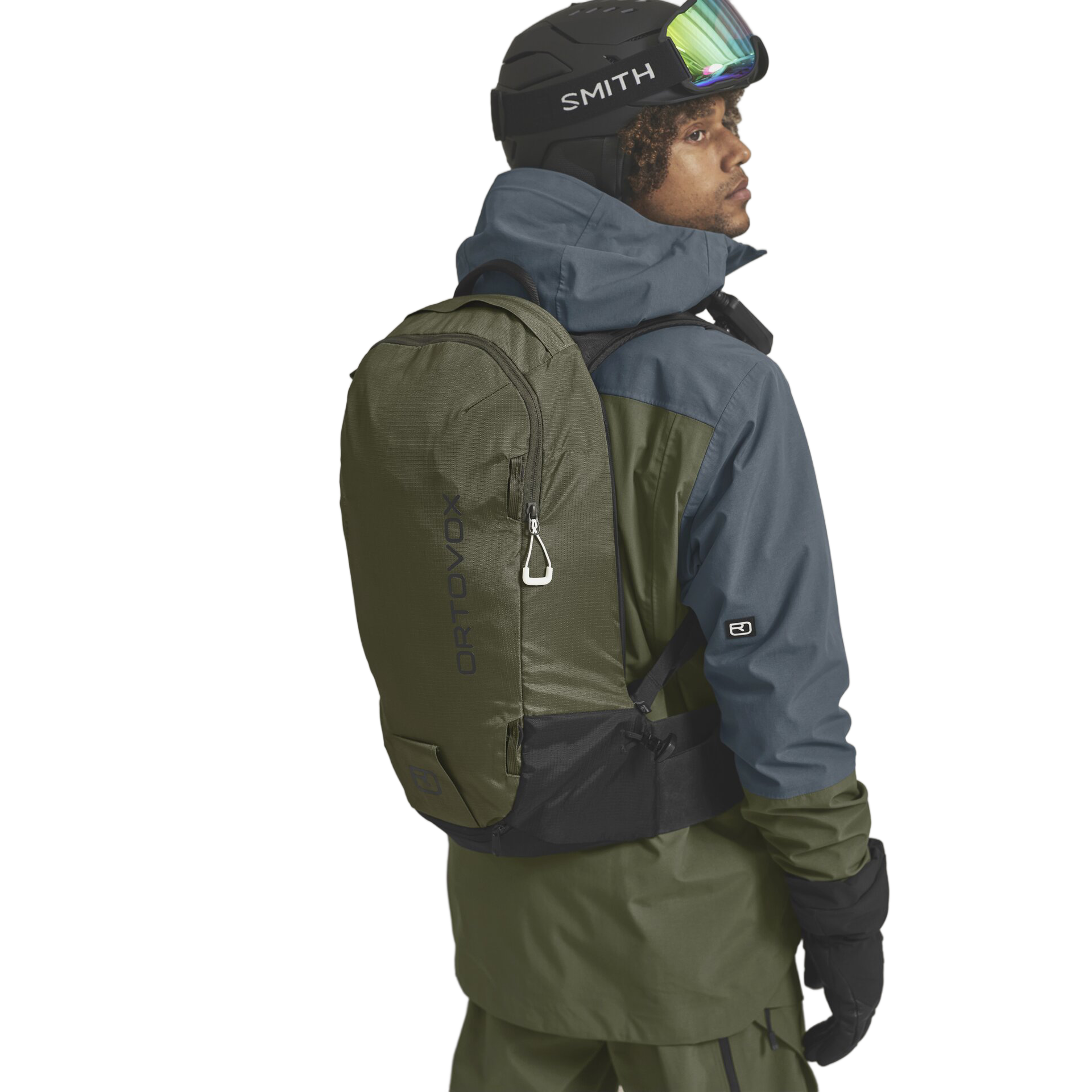 The compact freeriding backpack also offers enough space for climbing skins and ski crampons, ensuring extra flexibility out on the mountain. Emergency equipment can be neatly stowed away and kept at hand in a separate safety compartment, while all other items in the main compartment are accessible via front or back access. The FREE RIDER 22 is a versatile companion for maximum flexibility and freedom of movement on skis.