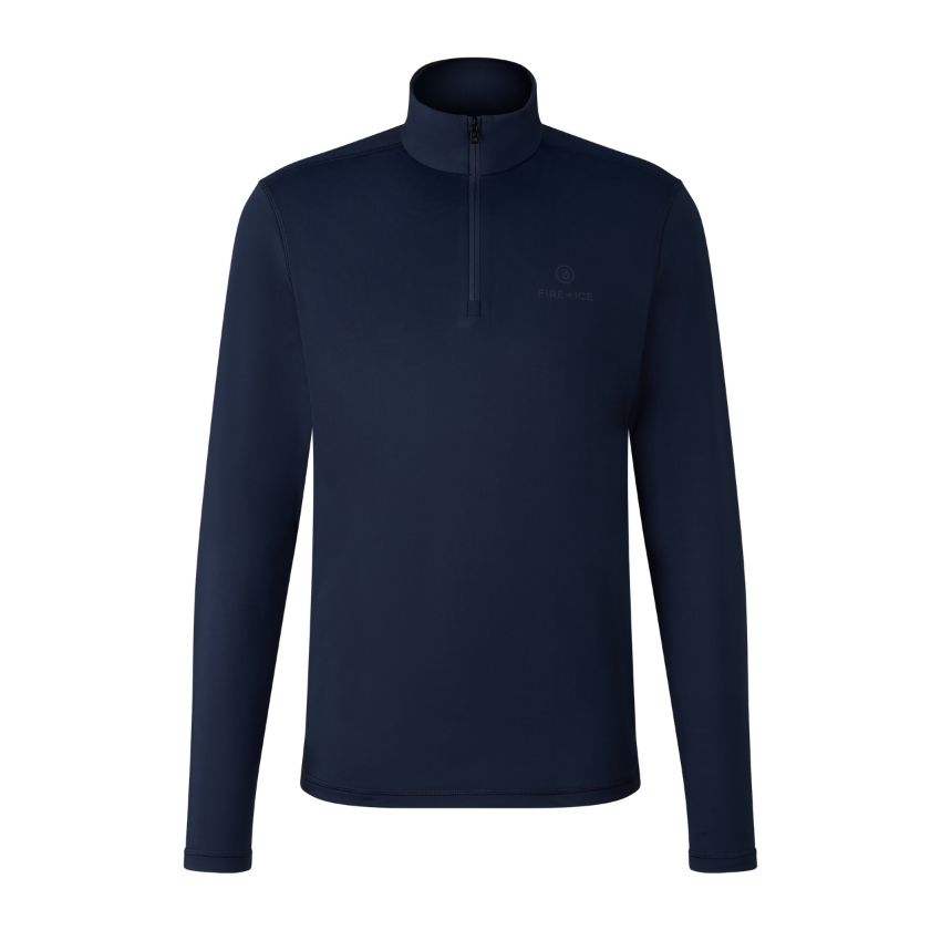 First layer in a regular fit featuring stand-up collar with short B-zipper, long sleeves, sleeve cuffs with overlock seams, tonal FIRE+ICE print on the chest and hem finish with overlock seams