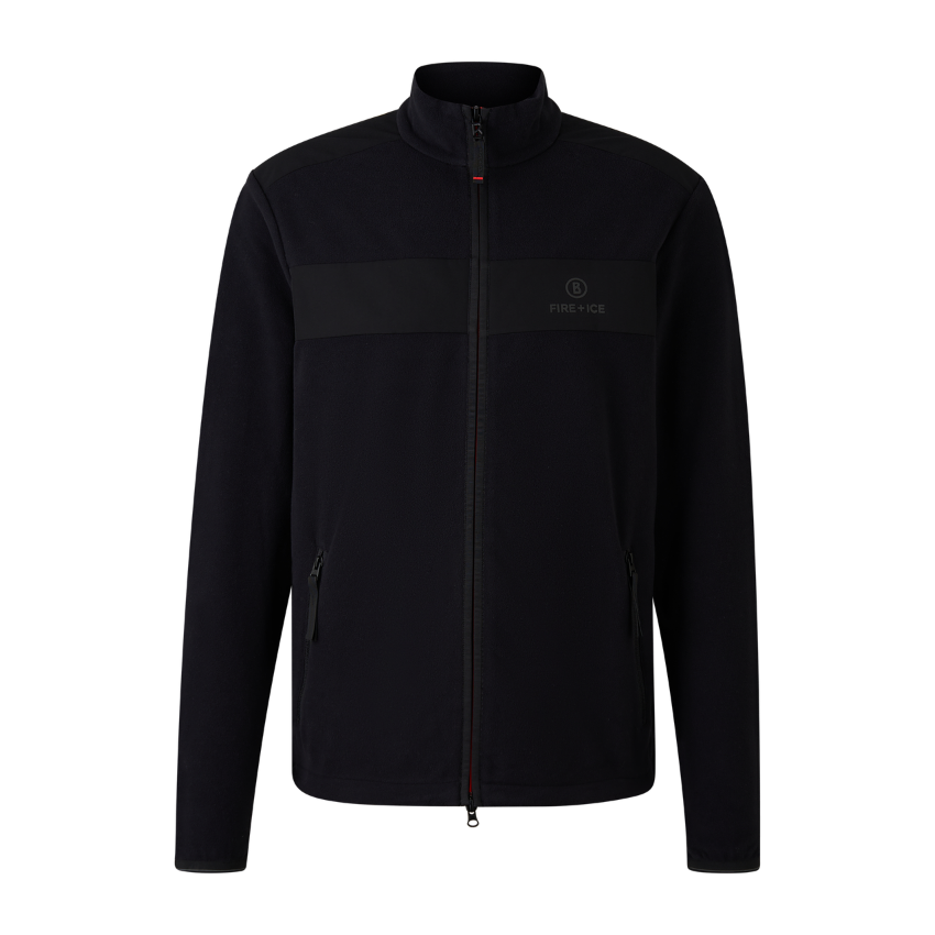 Fleece mid-layer in a regular fit featuring stand-up collar, long sleeves, narrow, elasticated cuffs with reflective finish, contrasting two-way zip with B pendant, two side zip pockets, smooth tech sections Reflective FIRE+ICE print at chest height, hem with