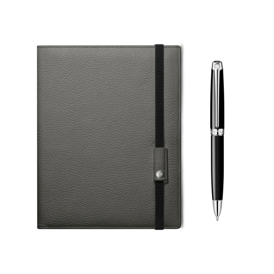 Caran d’Ache Léman™ Ebony Black Set – Pen + Grey Notebook