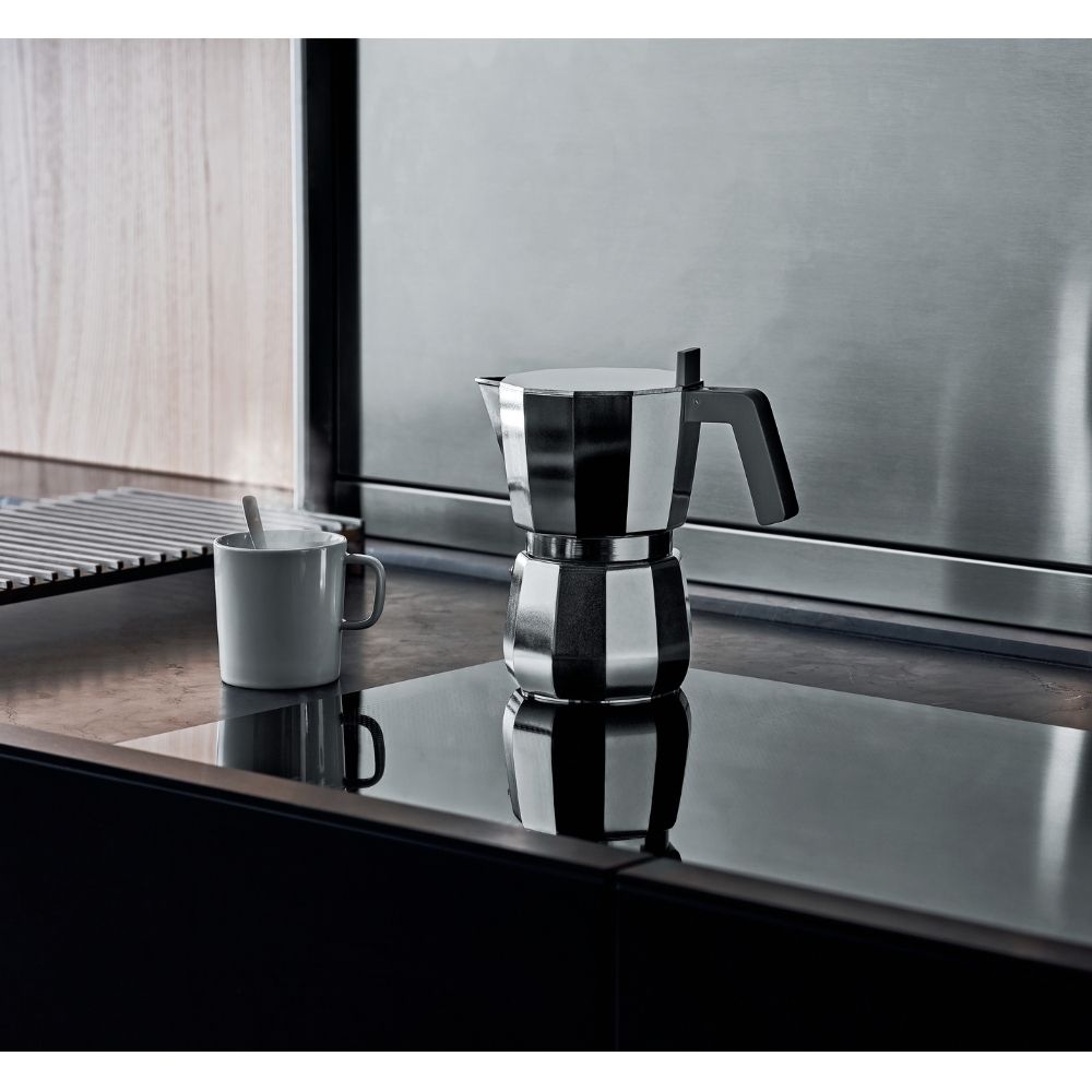 A coffee maker with a familiar and at the same time innovative form. Designed by architect David Chipperfield, Moka is an artist's interpretation of a timeless icon of the Italian culture. Chipperfield introduces a series of details that make the Moka design new and even more functional, such as the flat lid on which to place the cups to be heated - allowing optimum enjoyment of the aroma and flavour of the drink. For those who don't want to compromise on the unmistakeable taste of coffee prepared with an espresso coffee maker.