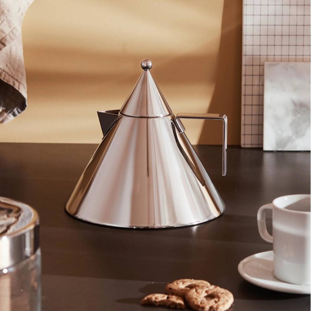 Il Conico induction kettle is the architectural derivative created by Aldo Rossi: made of stainless steel 18/10, it is the transformation of his geometric designs into a kitchen object, that soon became a design icon. This conical kettle makes a striking statement in any kitchen.