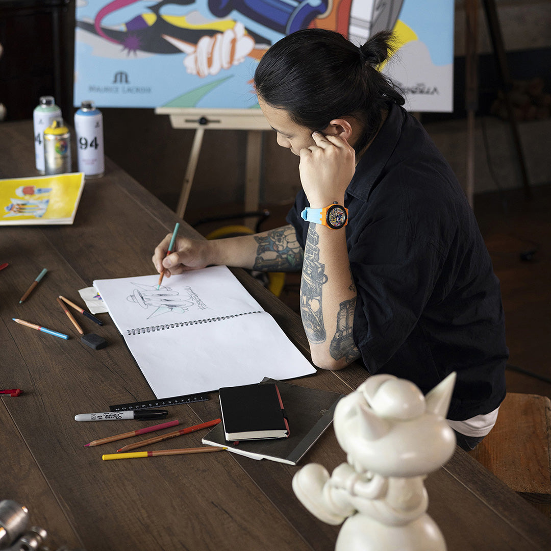 Maurice Lacroix continues to spread the word about its ground-breaking watch, the AIKON #tide, releasing a new variant created in conjunction with Thai artist and ML Crew member, Benzilla. This special edition watch unites the world of street art and watchmaking, employing an array of vibrant colours.