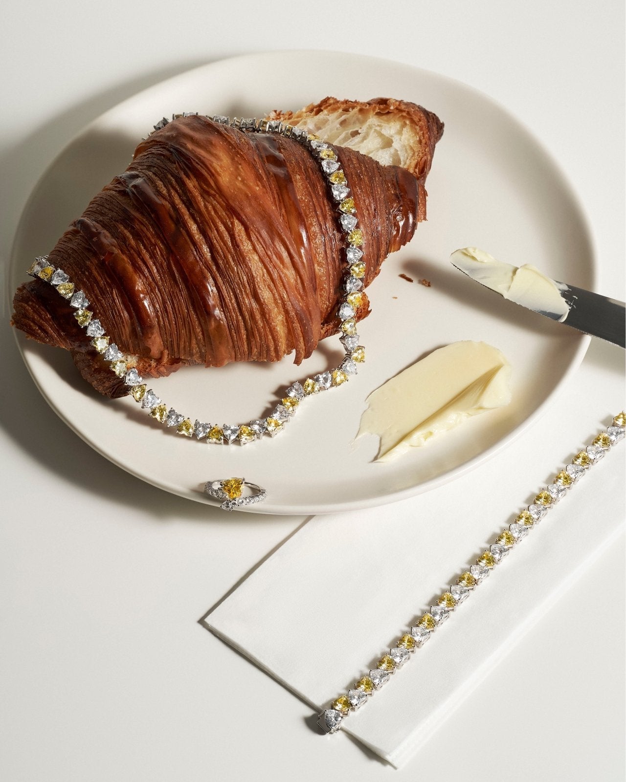 Step into the spotlight! The classic tennis necklace gets a modern upgrade with luxe finishing touches you'll be tempted to wear daily. The Heart Crystal Tennis Choker is topped off with a feminine shape. It comes in two lush colors: white diamond or white yellow color combination. Take your pick and add a little something to looks both casual and dressy.