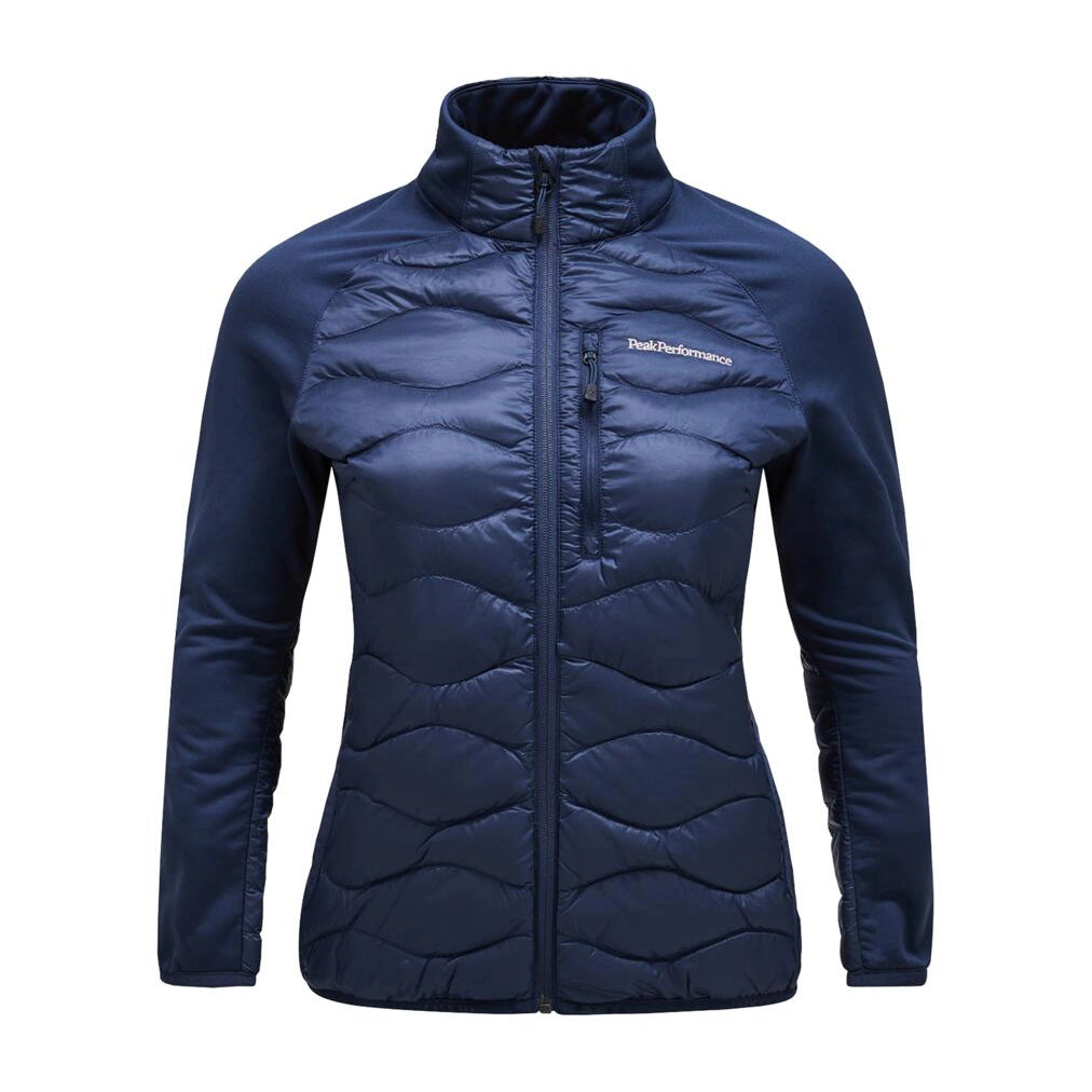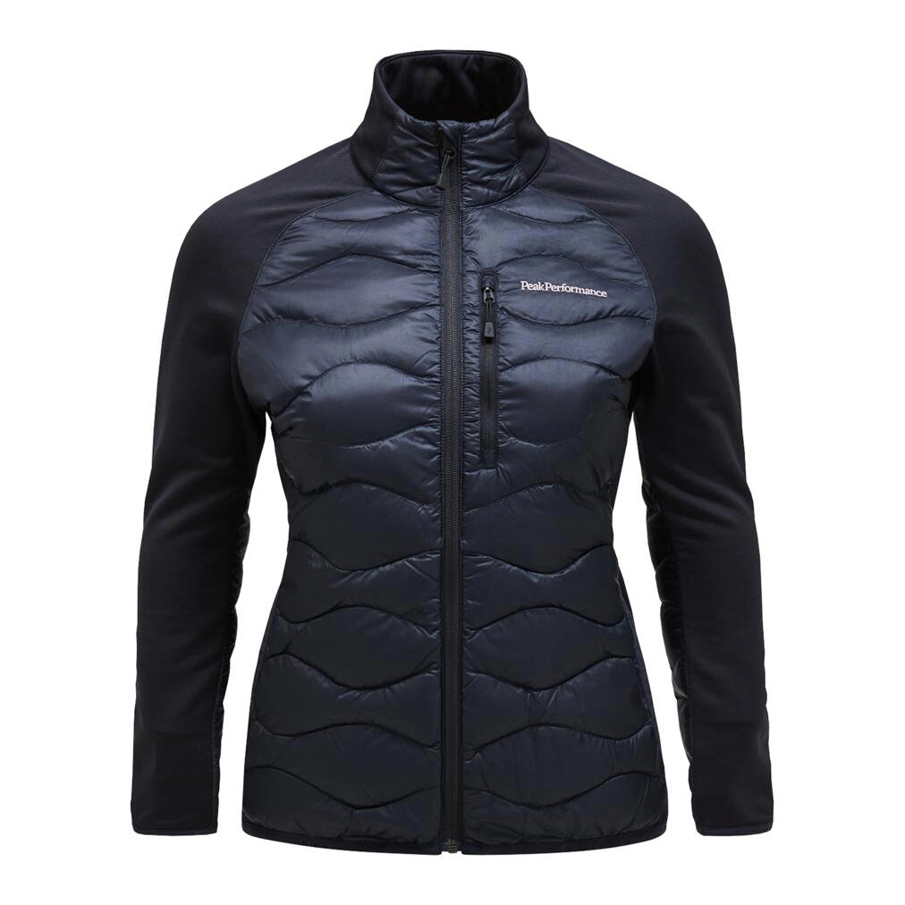 Chinguard, Duck down, 700 fill power, 90/10 down/feather, Elastic binding at bottom hem, Elastic cuffs, Full front with reversed YKK coil zipper, Hanger loop outside neck, Hybrid, Jersey panels, Lightweight, 42 gsm 20D ripstop. Windproof and repels light rain, Made without intentionally added PFAS, Midweight, 271 gsm flat fleece, soft brushed back that traps warm air. Dries quickly, Open hand pockets, P-logo embroidery at sleeve, Peak Performance embroidery at chest, Quilted in our iconic Helium pattern, Responsible down standard, Side panels in polyester jersey, Soft, midweight polyester fleece with brushed back, Stand up collar, Sterilization Permit no. PA 9900(CN), Ultralight nylon ripstop, wind and water resistant, Zippered chest pocket