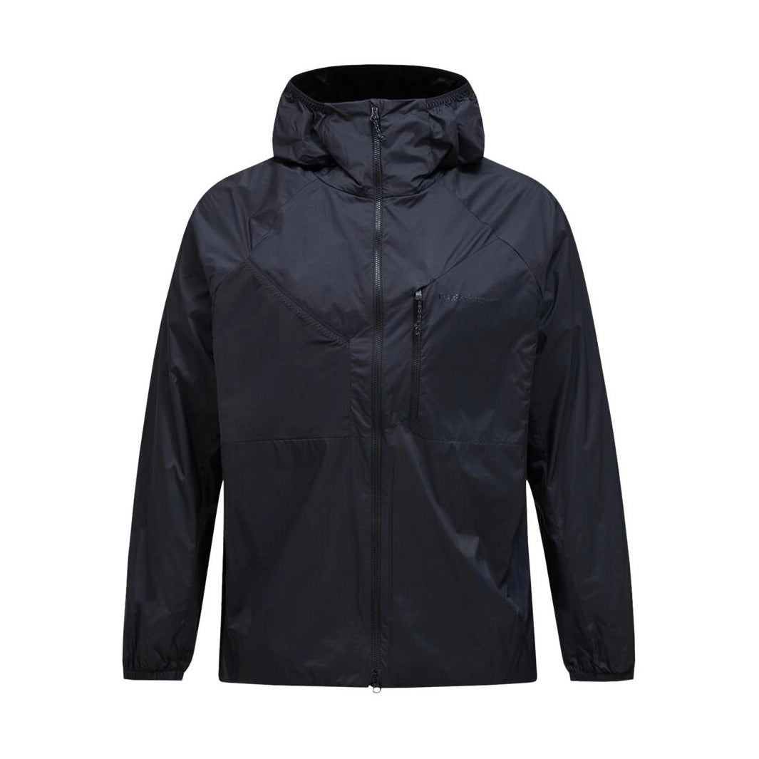 Adjustable drawcord at bottom hem, Body - 68 gr/m2, Elastic binding at hood edge, Elastic cuffs, Fixed Hood, Full front with 2-way YKK Vislon® zipper, Hood fixation with hook and loop, Lightweight, 102 gsm, 90D stretch poplin with a dry touch. Repels light rain, Lightweight, 43 gsm 20D plain weave. Windproof and repels light rain, Made without intentionally added PFAS, P-logo print at sleeve, Partially wind blocked, Peak Performance print at chest, Polartec® Alpha™, Raglan sleeves, Storage mesh pocket outside right chest, Zippered chest pocket