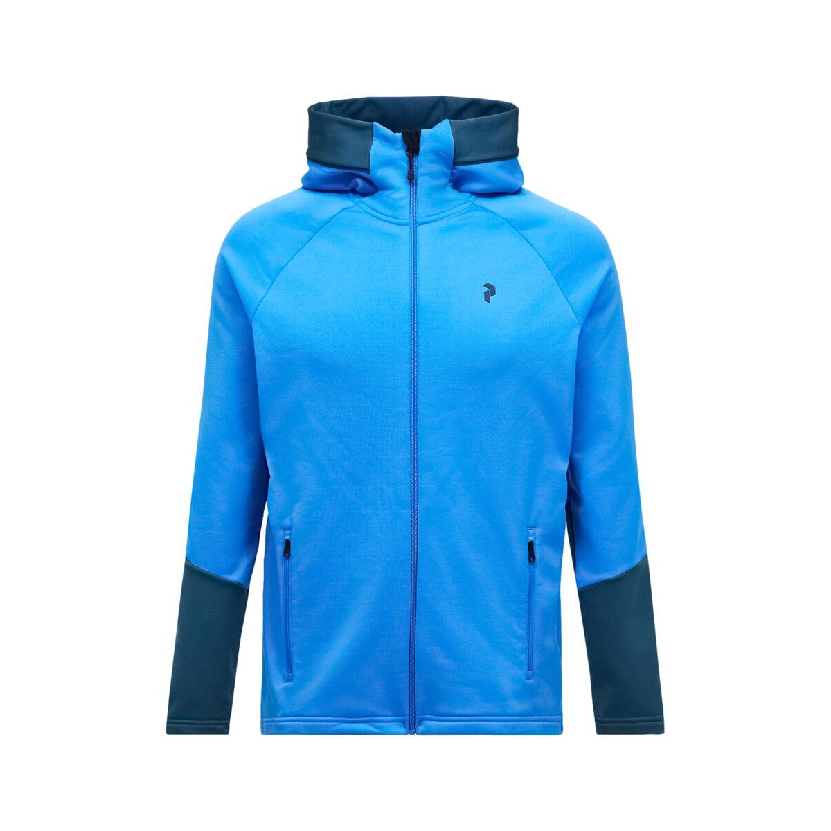Full front with YKK coil zipper, Made without intentionally added PFAS, P-logo print at chest, Peak Performance print on hood, Single layer hood, Soft fleece lined chin protection, Zippered hand pockets