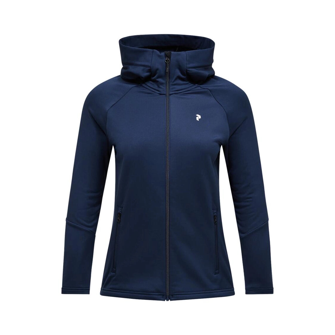 Full front with YKK coil zipper, Made without intentionally added PFAS, Midweight, 271 gsm flat fleece, soft brushed back that traps warm air. Dries quickly, P-logo print at chest, Peak Performance print on hood, Single layer hood, Soft fleece lined chin protection, Zippered hand pockets