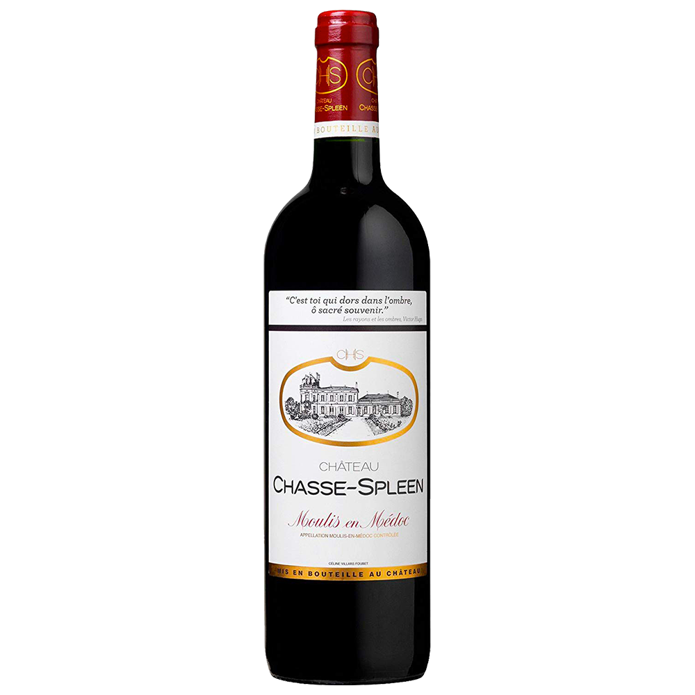 Château Chasse-Spleen 2019 is a confident and expressive Bordeaux from Moulis-en-Médoc. It opens with aromas of blackcurrant, blackberry, dark cherry, leather, cedar and subtle tobacco, evolving to hints of sous-bois and crushed stone. On the palate it shows a mid-to-full body, firm but ripe tannins, bright acidity, spicy depth and a persistent, mineral finish—refined yet powerful, with good aging potential.