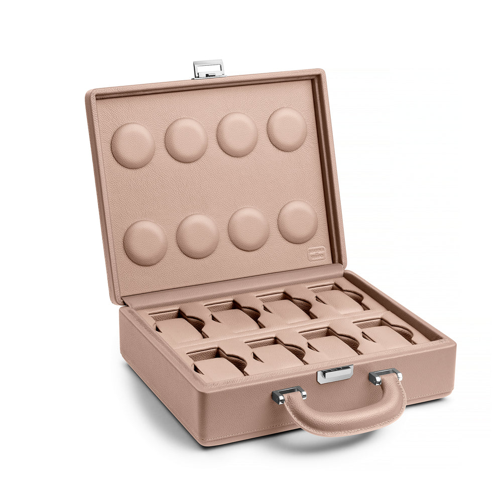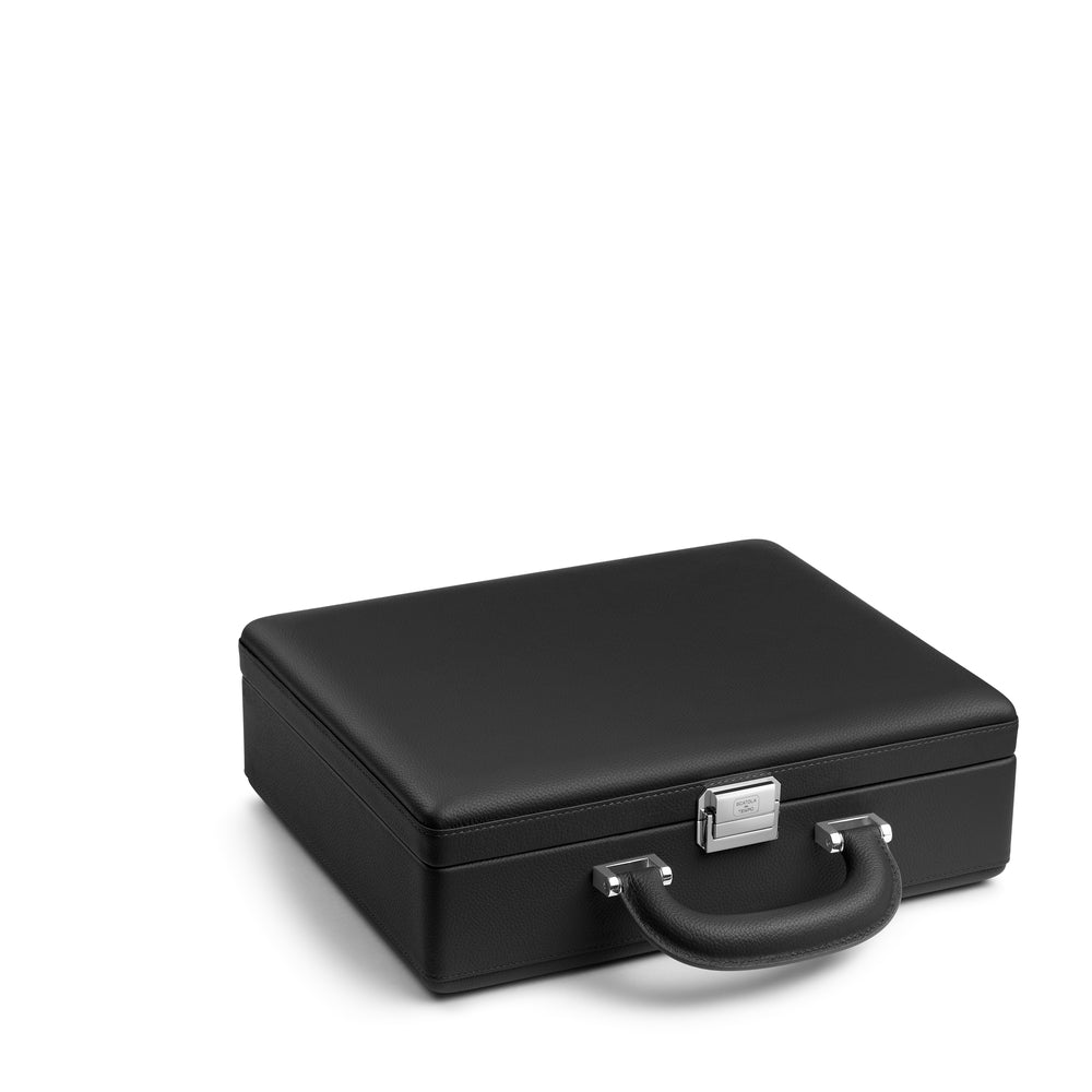 Crafted with exceptionally high-quality grained leather, the Valigetta 8 watch travel case offers unparalleled security for each of your precious watches. The elegance of its leather perfectly complements its robustness, ensuring optimal protection against shocks and scratches. With its ergonomic handle, this watch briefcase accompanies you with refinement during your travels.