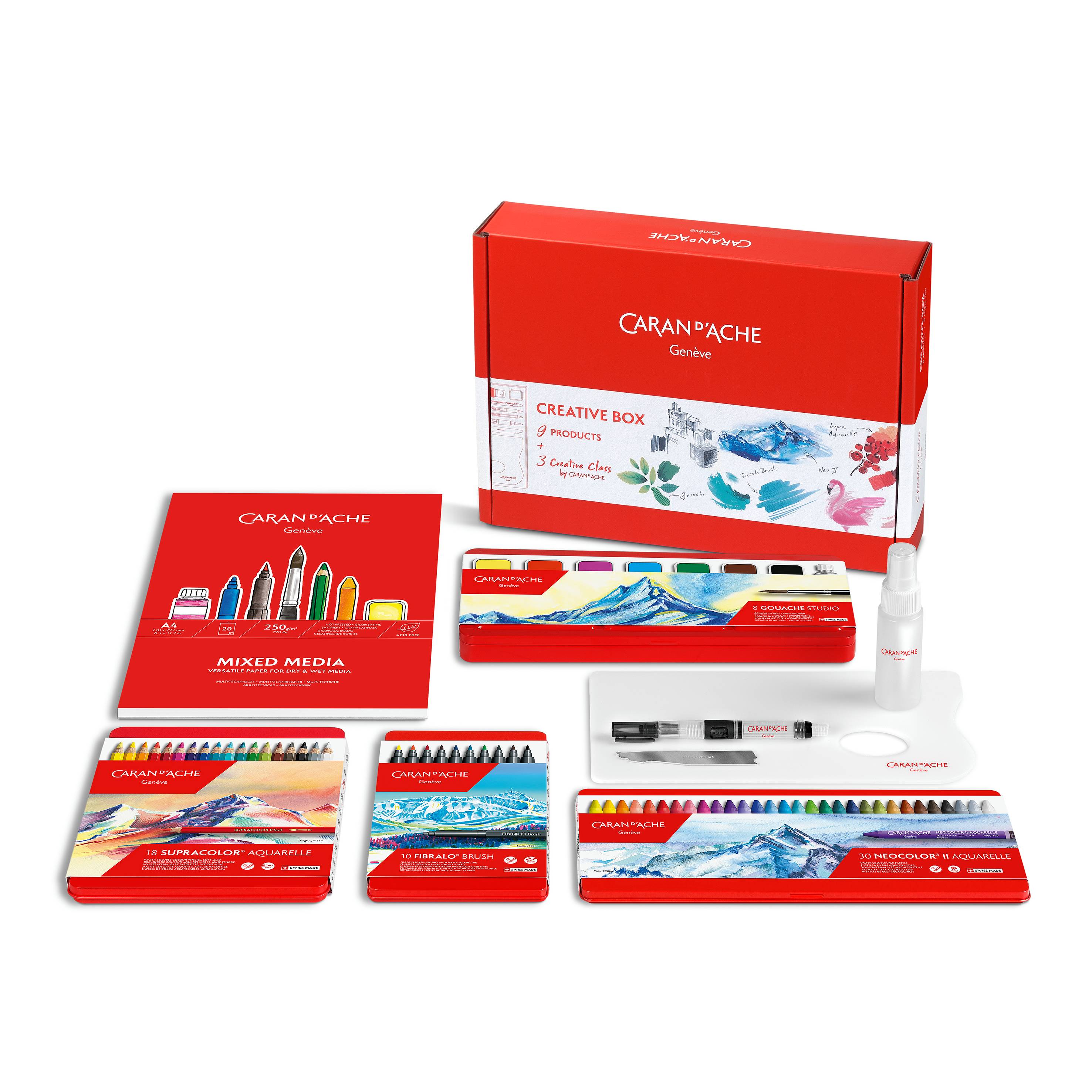A turnkey creative box that brings together the entire Caran d'Ache universe: pastels, pencils, felt-tip pens, gouaches and online courses to unleash creativity, at any age and at any level.