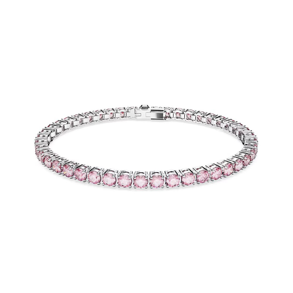 Enjoy the glimmer of rich color with this Bracelets from the Matrix Tennis family. In perfectly formed fluidity, the design features a row of round purplish pink stones on a rhodium plated setting for a combination that is truly alluring. Wear it alone, or pair it with other pieces from the Matrix Tennis family.
